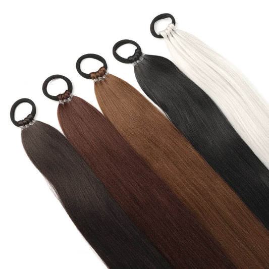 28 Inch Straight Ponytail Extension Synthetic Elastic Hair