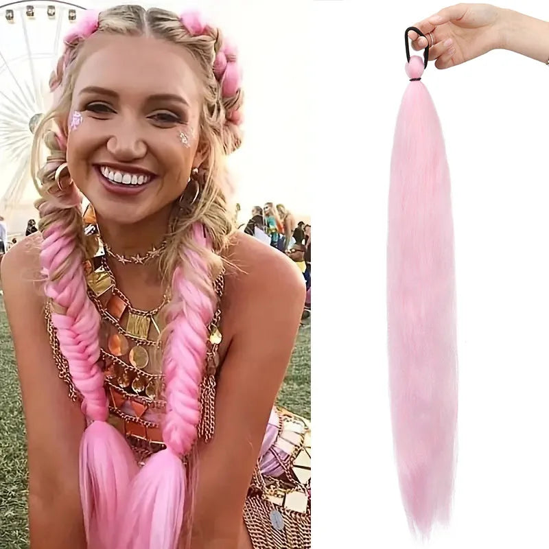 Featuring colorful braided accents, this ponytail brings a trendy and fashionable touch to everyday hair. It’s perfect for adding personality without dyeing your natural hair.