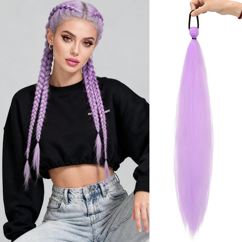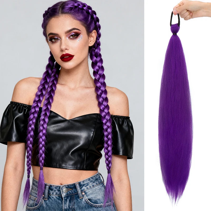This 26-inch synthetic long straight ponytail extension adds instant length and a smooth, polished finish to your hairstyle. Designed to blend naturally, it enhances volume while maintaining a clean, elegant look.