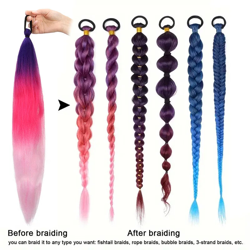 ✅ Style: Long straight with colorful braided detail