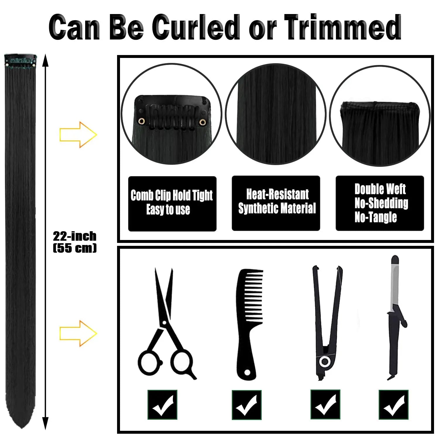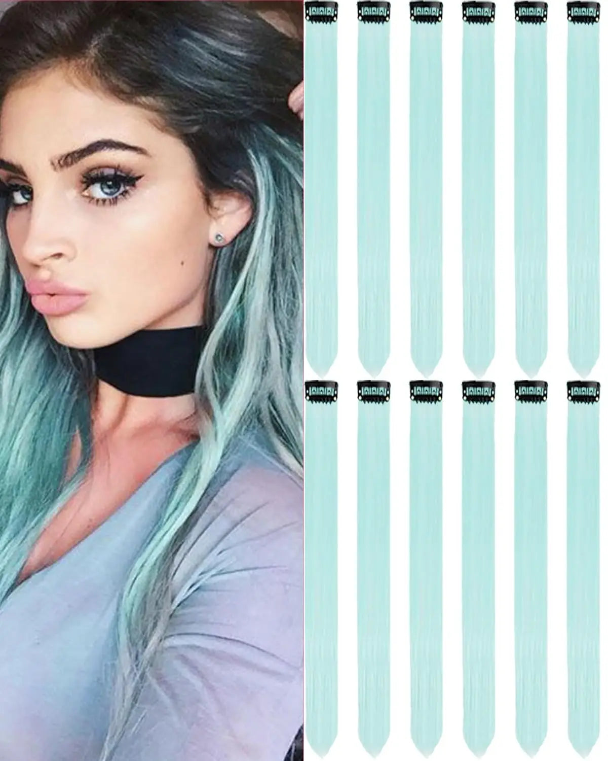 Clip In Synthetic Hair Extensions Colored Party Highlights...